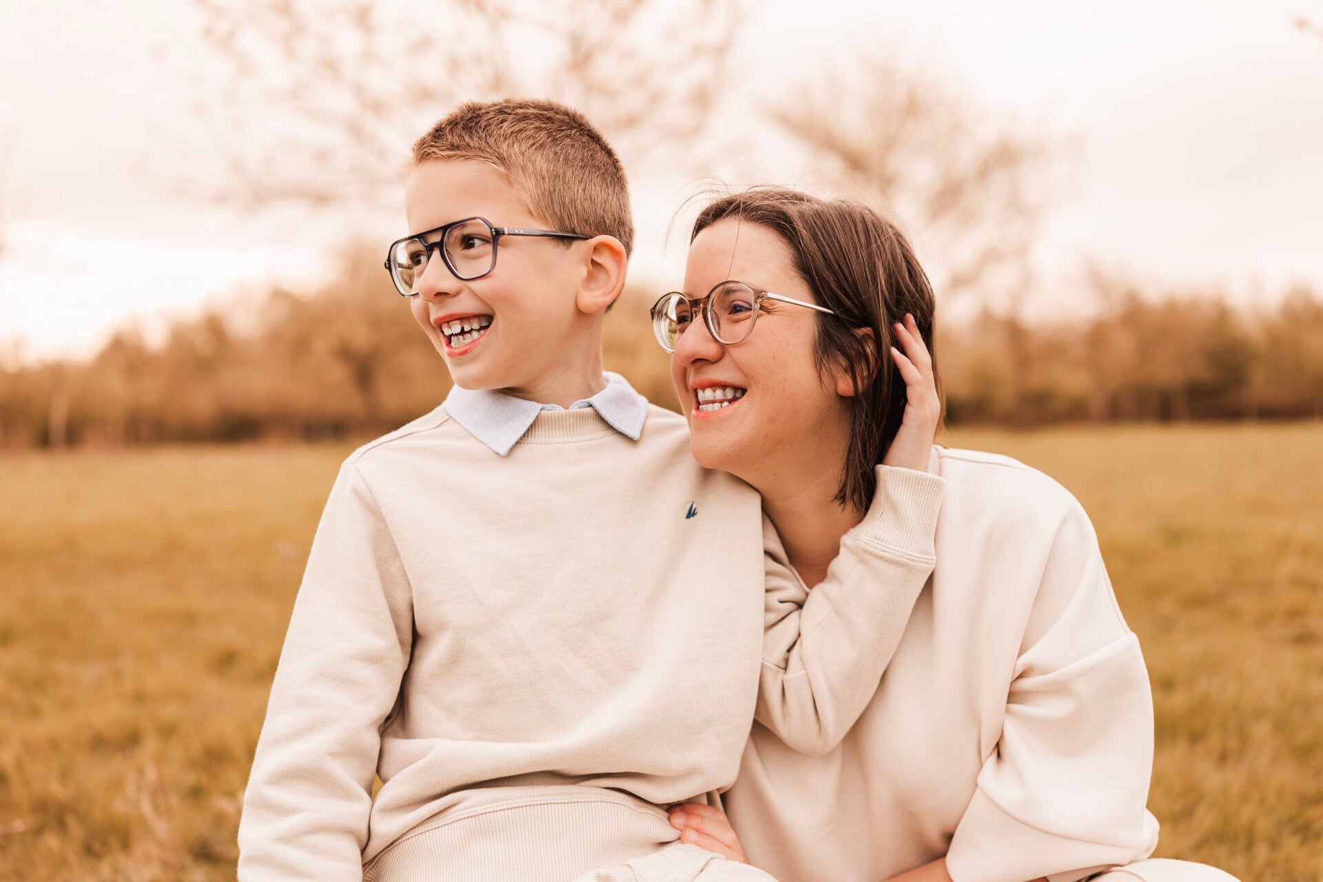 Zachte, rustige tinten zorgen ervoor dat de aandacht naar jullie, en de verbinding binnen het gezin gaat — en niet naar de kleuren.